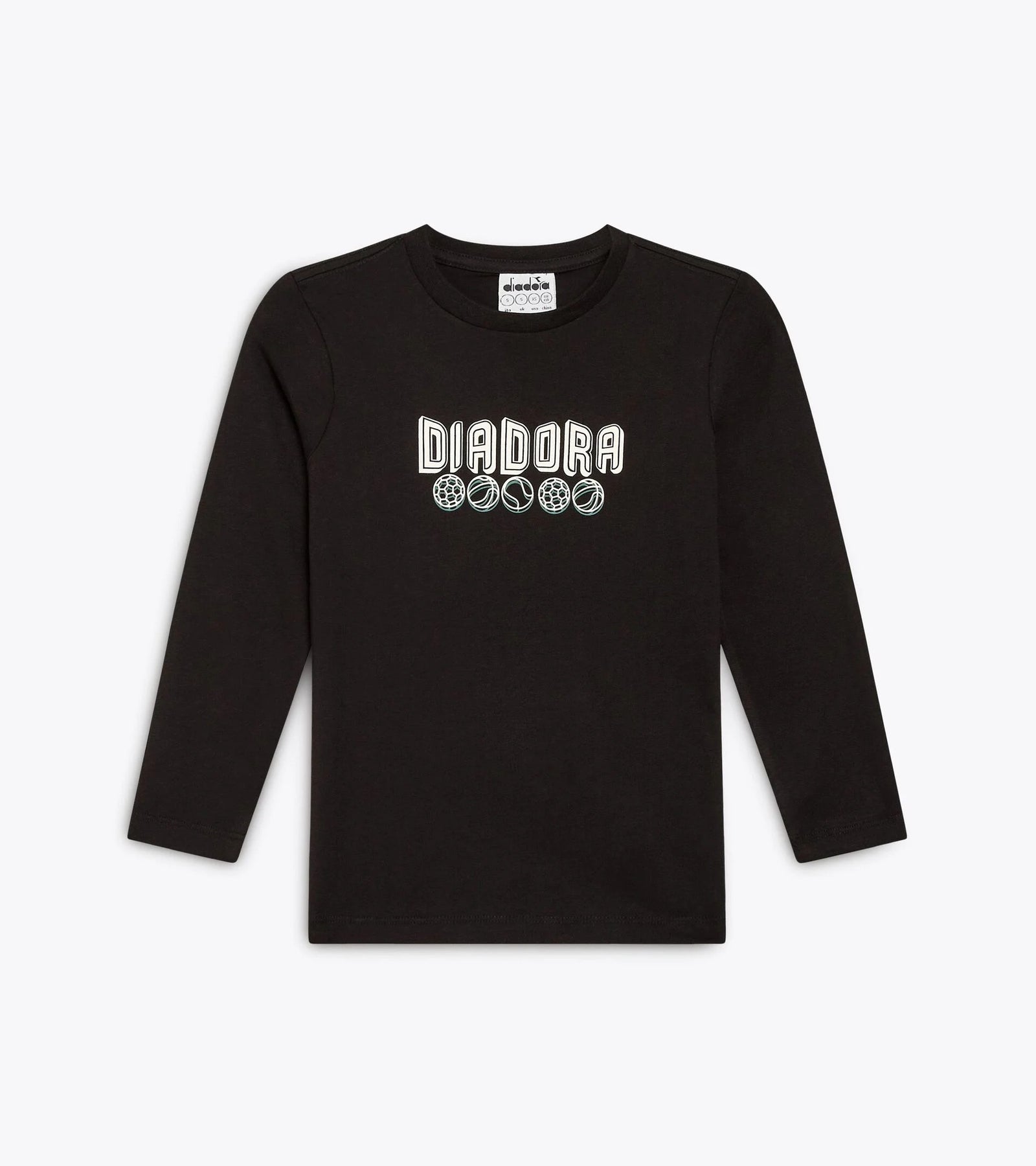 T.shirt di cotone da bambino a maniche lunghe con stampa davanti. Colore: Nero, verde.