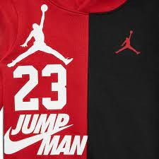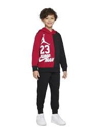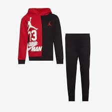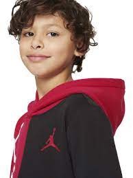 Tuta felpata della Jordan da bambino con felpa con cappucico e logo grande e pantalone con elastico in vita e polsino.
